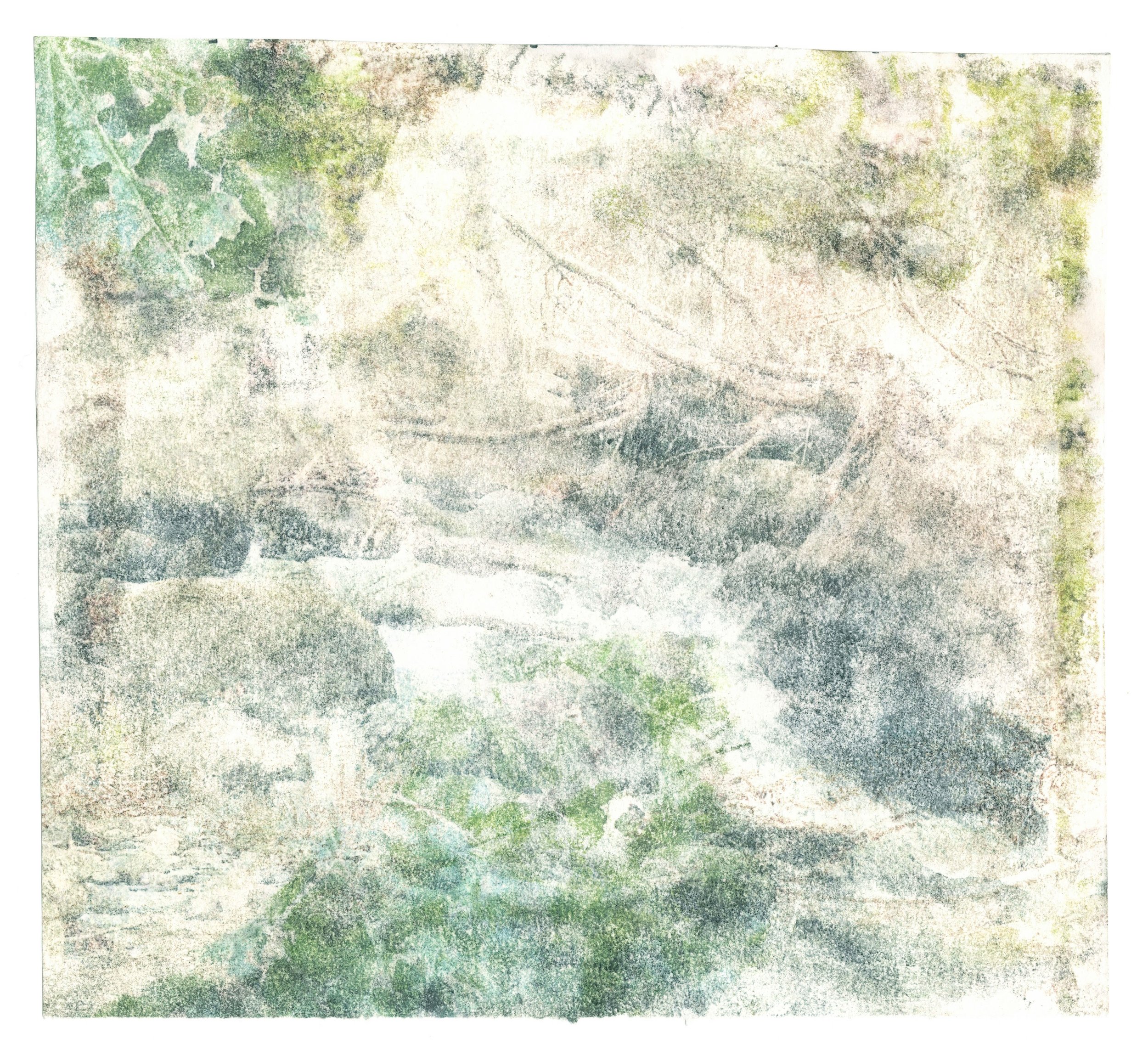 Illusory Landscapes of an Interior Territory is an effort to create an internal map of the lands in which I’ve felt both held and unnerved, through a collage of image transfers of various of photographs taken in situ. The work is largely prompted by the numerous works of Barry Lopez, whose writing touches on an expansive list of subjects, including: how human imagination is shaped by the landscapes we encounter, his experience of childhood sexual abuse, kinship to nature, and the need to let the lands you love mobilize you into action. Illusory Landscapes of an Interior Territory is a response to the deeper reflections Barry Lopez’s works prompted within me: around impermanence, relational ways of being with land, and the repression, erosion, and reconstruction of memory.